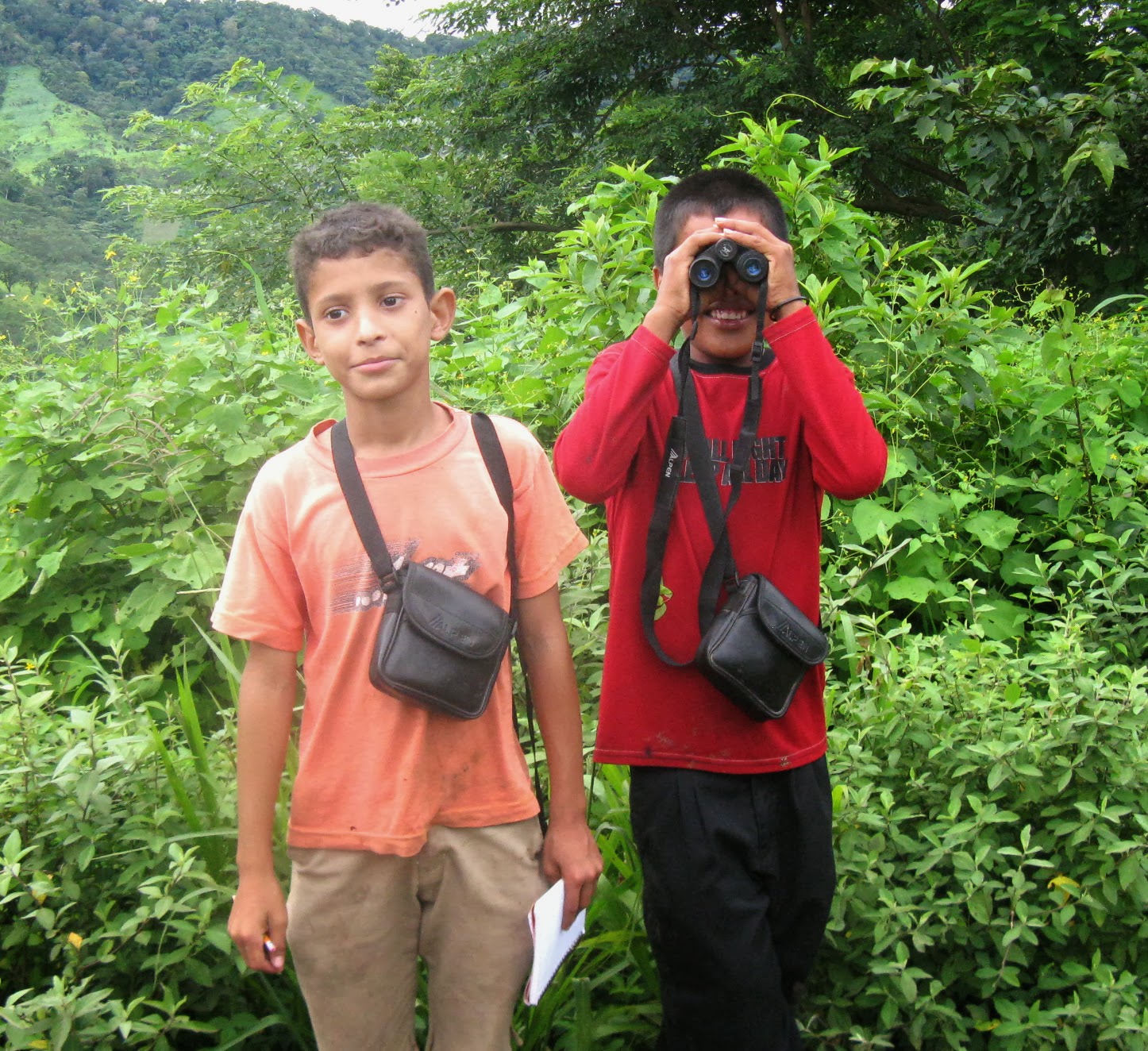Al entregar sus hondas y comprometerse a proteger la vida silvestre, Estos dos jóvenes nicaragüenses ganaron binoculares y se convirtieron en estudiantes de los programas de educación ambiental de Paso Pacífico..
